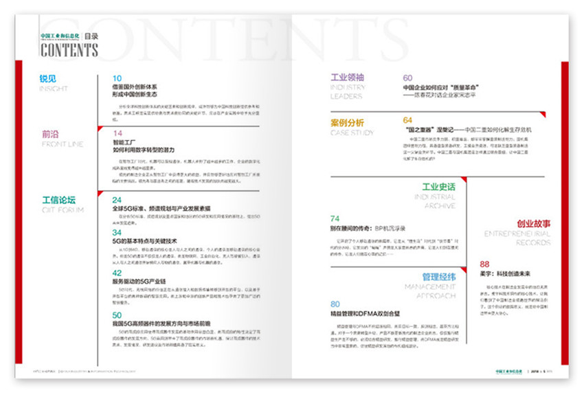 《中國工業(yè)和信息化》主要欄目:工經(jīng)論壇、工業(yè)領(lǐng)袖、視野、前沿、管理經(jīng)緯、專題研究等。