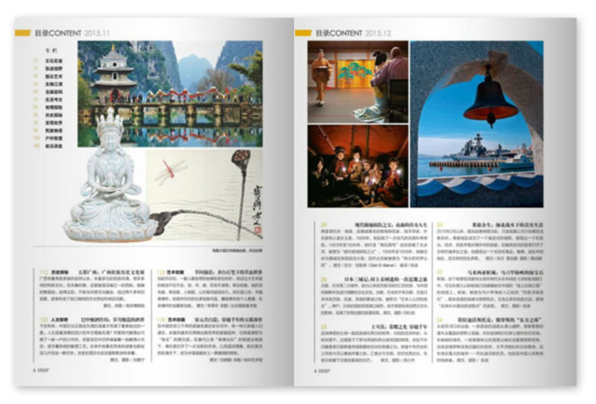 一本中國原創(chuàng)的以東方人的視角,探索中國、發(fā)現(xiàn)世界。關(guān)注生態(tài)和人文,探索人類文明發(fā)展和和諧自然的高品質(zhì)視覺文化雜志;一本中國原創(chuàng)的以東方人的視角,探索中國、發(fā)現(xiàn)世界。關(guān)注生態(tài)和人文,探索人類文明發(fā)展和和諧自然的高品質(zhì)視覺文化雜志。