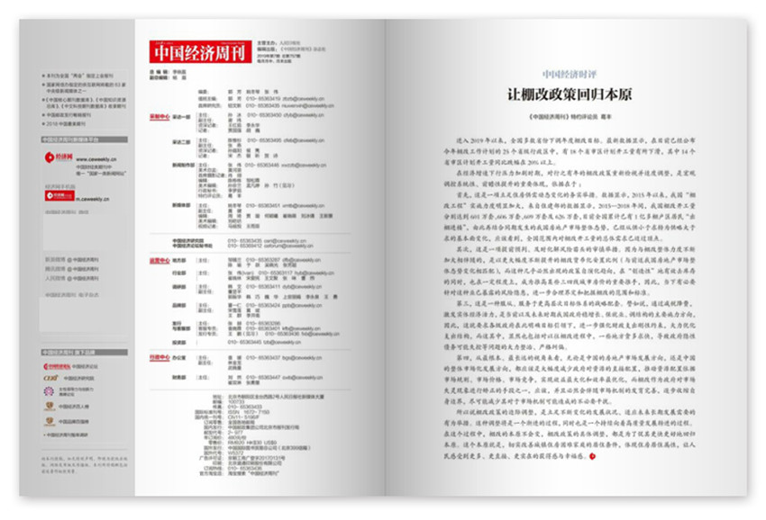 《中國經(jīng)濟周刊》雜志定位于“領(lǐng)導(dǎo)者決策的經(jīng)濟參考”,以政經(jīng)為主的綜合經(jīng)濟類期刊,為中央、地方及企業(yè)的領(lǐng)導(dǎo)層提供有決策借鑒價值的資訊,做中國經(jīng)濟轉(zhuǎn)型的真實記錄者,中國經(jīng)濟國際化的理性觀察者,中國經(jīng)濟復(fù)興的歷史見證者。
