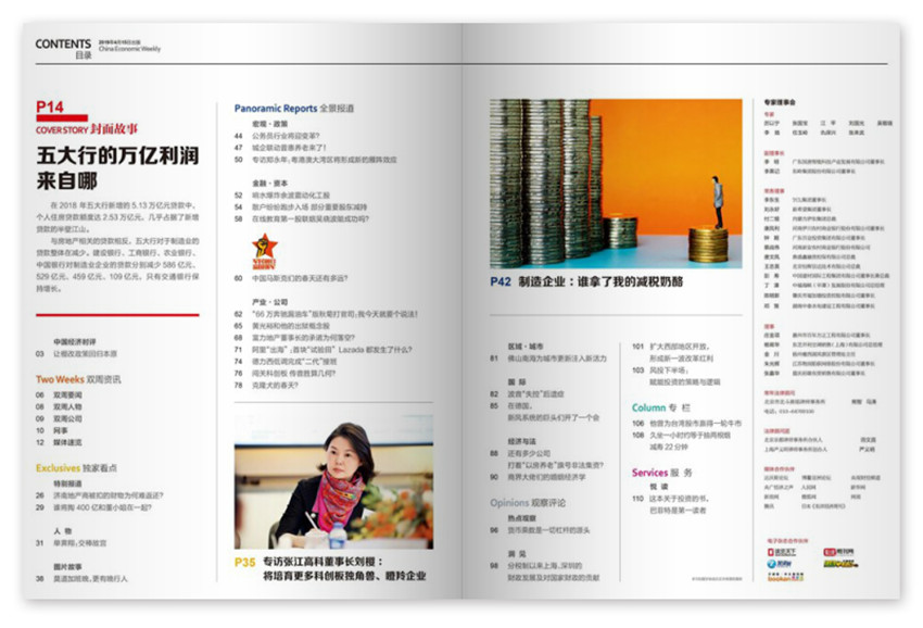 《中國經(jīng)濟周刊》主要欄目:中國經(jīng)濟時評、封面文章、特別報道、中國經(jīng)濟論壇、洞見、區(qū)域、產(chǎn)業(yè)、金臺銀街。