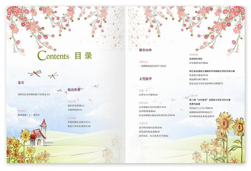 《中國(guó)校園文學(xué)·小學(xué)》主要欄目:經(jīng)典再現(xiàn)、佳作有約、成長(zhǎng)天空、畫(huà)夢(mèng)工廠、教師在線、主題閱讀等。