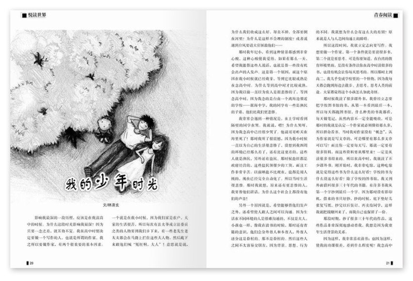 《中國(guó)校園文學(xué)》雜志選登優(yōu)秀的中學(xué)生文學(xué)作品,為孩子們帶來(lái)有趣的文學(xué)世界,同時(shí)也為同學(xué)們寫(xiě)作提供參考和榜樣。在這里我們能看到充滿(mǎn)想象力的故事,飽含真摯情感的文字以及優(yōu)秀的故事。