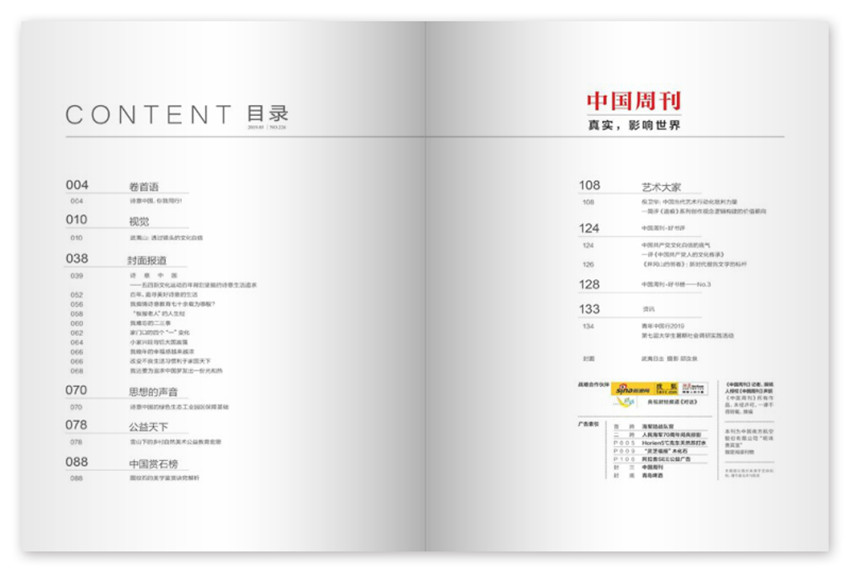 《中國周刊》主要欄目:速覽,重點,創(chuàng)造,人物,影像,調(diào)查等。