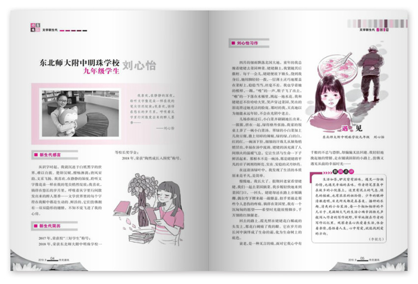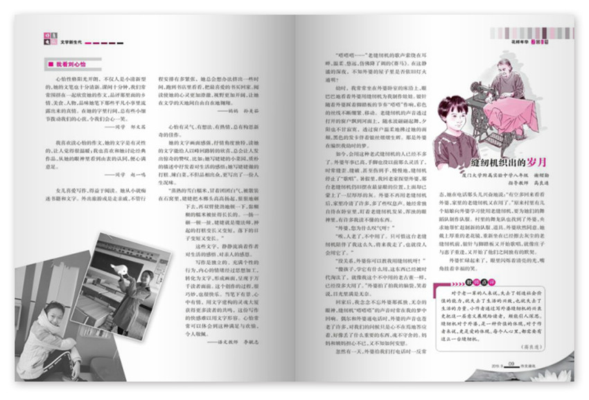 《作文通訊》,創(chuàng)刊于1979年,期望通過自身在傳播領域的資源優(yōu)勢,給我們帶來高品質生活,紙張開本:16開,國內刊號:CN:12-1037/G4。封面更是“畫中話”,一幅“仁者見仁,智者見智”的漫畫,除了能吸引小讀者的閱讀興趣,更能激發(fā)他們的思考。因此封面美,美在設計上,不僅有形式美,還有思想美。