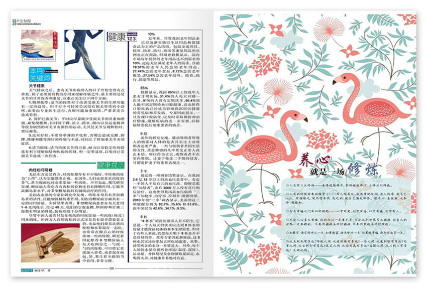 以40-60歲的中老年人為主要讀者群體,定位于有一定經(jīng)濟(jì)條件同時(shí)關(guān)注養(yǎng)生、有精力有時(shí)間有能力的中老年人,除了傳達(dá)“以養(yǎng)防病、以養(yǎng)祛病”的理念外,還會(huì)是一本關(guān)注中老年人及家庭成員身心健康的養(yǎng)生期刊。